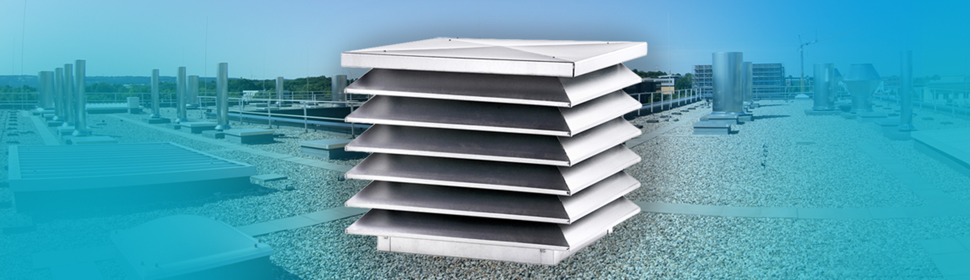 W wersji dachowej zastosowano nachylony daszek z krawędzią ociekową, który skutecznie odprowadza wodę poza obrys urządzenia. Konstrukcja dostępna jest w wykonaniu z aluminium, stali nierdzewnej V2A lub ocynkowanej blachy stalowej. Standardowo produkt posiada ramę nieperforowaną, z opcją wykonania ramy perforowanej na indywidualne zapytanie.