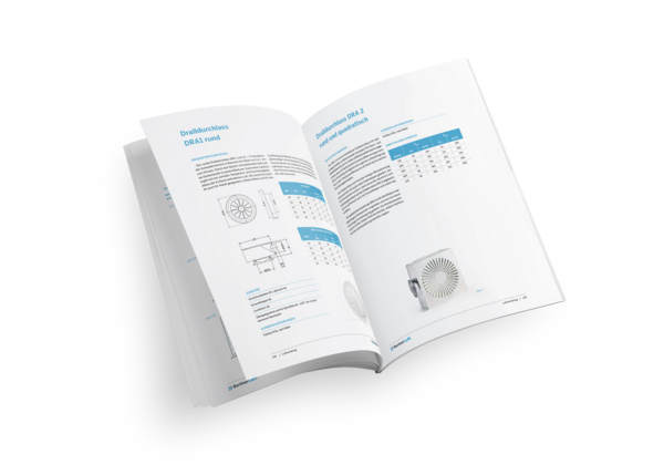 Wykonanie: Nawiewniki wirowe DRA 2 nawiewne lub wywiewne z nieruchomymi elementami kierującymi powietrzem (nawiew). Nawiewniki kwadratowe są przeznaczone do montażu w podwieszanych sufitach rastrowych i wyposażone są w pierścień usztywniający.