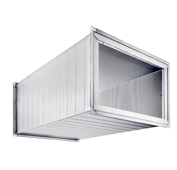 - izolacja przeciwdźwiękowa wewnętrzna z wełną mineralną i pokrywą z blachy perforowanej, miejsca stykowe pokryte blachą profilowaną